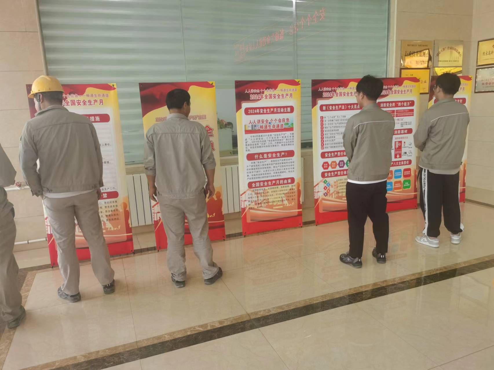 10-23日,各部门积极参与安全生产活动,张贴宣传条幅及展板、组织学习共计135分钟的安全警示教育片、对本部门及相应归属地的安全隐患进行排查治理。